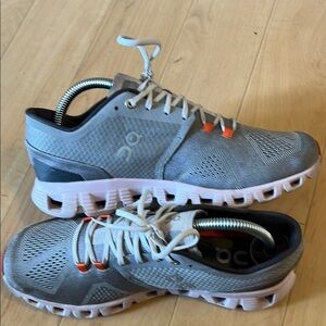 On Running Gray and Orange Athletic Shoes with Cushioned Midsole