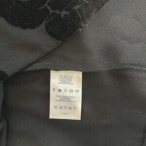 Elegant Black Floral Dress L below the knee Lands End pull on w flocked flowers