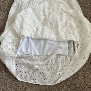 This elegant white eyelet dress is perfect for any occasion. Its delicate design offers a timeless look. Ideal for both casual and formal events.