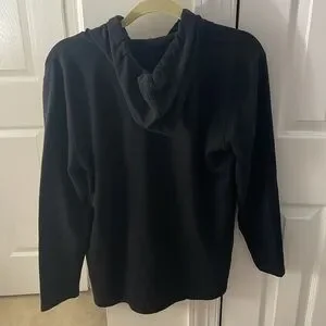 This black Michael Kors hoodie features a timeless crew neck design with long sleeves, crafted from a smooth fabric. Its classic construction offers a sleek and versatile look for any occasion.