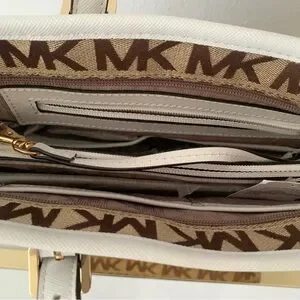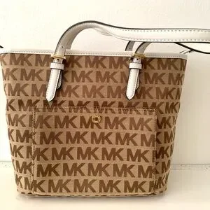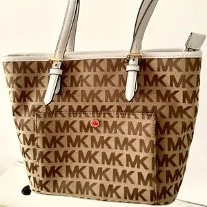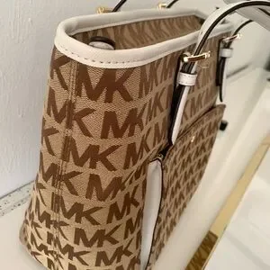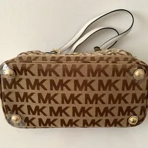 Michael Kors Brown Signature bag Monogram Tote Gold Hardware and White Trim NEW