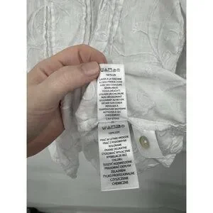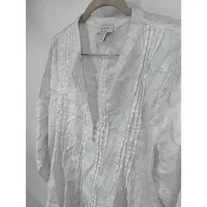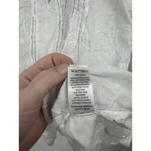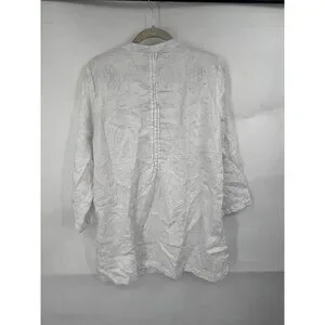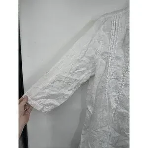 Kenar 100% Linen Shirt Women XL White Embroidered Roll Tab Sleeve Coastal Beach
