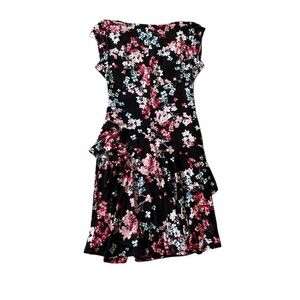 This Elle dress features a charming pink and white floral pattern on a fit and flare silhouette, perfect for a wedding guest or cocktail event. The sleeveless design and V-neckline add a touch of elegance, while the midi length offers a sophisticated look. Crafted from lightweight fabric, it ensures comfort and graceful movement.