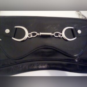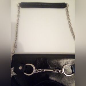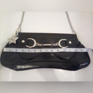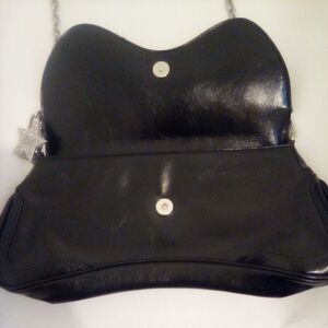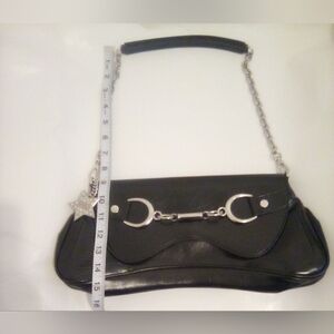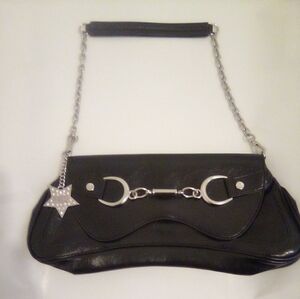 Paris Hilton Women's Rider Large Shoulder Baguette Bag Black Silver Chain
