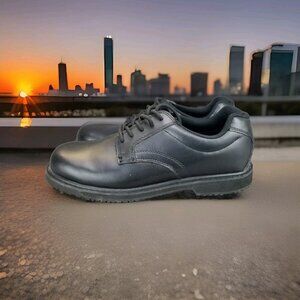 ✅Tredsafe Gary Black Leather Lace Up Slip Resistant Shoes Mens 7 Waiter Sneakers