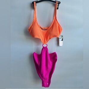 NWT Salt + Cove Monokini Swimsuit Orange & Hot Pink Size Large