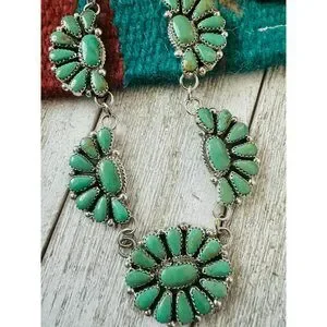 Navajo Sterling Silver & Turquoise Cluster Necklace and Earring Set