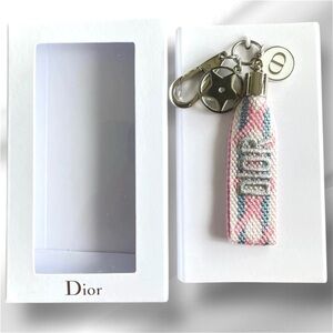 Elevate your style with this Dior keychain. Featuring a chic pink and blue design, it's perfect for adding a touch of luxury to your accessories.