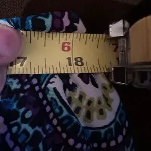 Stylish maxi dress with intricate patterns. Features a blend of blue and green hues. Perfect for casual or formal events. Measurements approximately. Length is 54 inches. Atmpit to armpit is 16 inches. Waste is 18 inches.