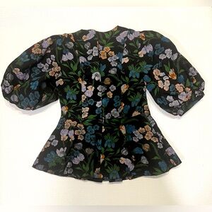 GRACIA Floral Puff Sleeve Blouse with pleated waist Size small