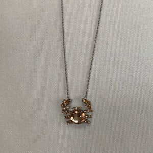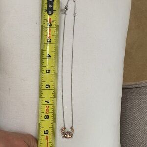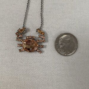 Stunning peach crystals all over this cute crab on a silver chain. Perfect condition. Never worn. 18 inches adjusts to shorter lengths.