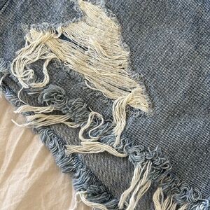These Moussy jean shorts feature a stylish distressed design with a raw-edge hem, offering a trendy and casual look. The blue color adds a classic touch, making them a versatile addition to your wardrobe. Perfect for a relaxed day out, these shorts combine comfort with contemporary fashion. Five pockets, mid rise, button fly, and 100% cotton. Out of stock on most stores