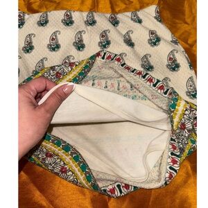 - Elegant cream skirt featuring a vibrant cute paisley print