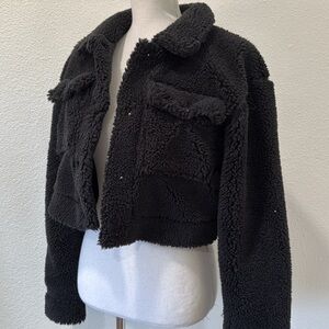 Forever 21 Black Sherpa cropped Jacket Sz m