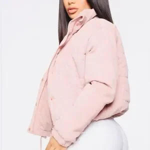 Fashion Nova Cover Your Tracks Puffer Jacket with Ribbed Details Mauve 2x NWOT