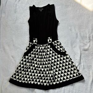 Elevate your style with this chic black and white elegant dress. Featuring a bold triangle pattern, it's perfect for any occasion. Preowned in exceptional condition. Smoke/pet free home.