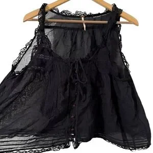 FREE PEOPLE Evermore Lace Button Down Ruffle Black Cami Tank Top