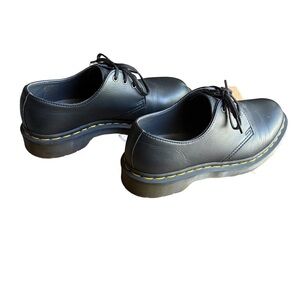 Experience the perfect blend of durability and style with these Dr. Martens black oxfords. Featuring a smooth leather upper and a distinctive air-cushioned sole, these shoes offer comfort and a classic look. The contrast stitching and round toe design add a touch of timeless elegance to any outfit.