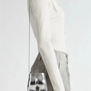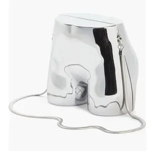 This stunning silver clutch features a sleek, metallic finish that captures light beautifully, making it a standout accessory for any occasion. Its compact design is perfect for carrying essentials, while the reflective surface adds a touch of modern elegance. Ideal for evening events or special occasions, this clutch is both stylish and functional.