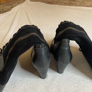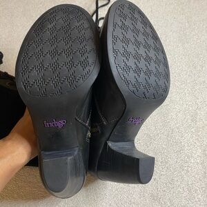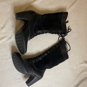Indigo Black Lace Up Boots with Chunky Heel