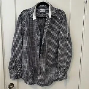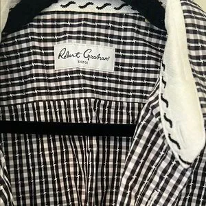 This Robert Graham shirt features a timeless black and white pattern, perfect for a laid-back yet sophisticated look. Crafted from quality materials, it offers comfort and style for everyday wear. Its casual button-down design makes it a versatile addition to any wardrobe. 43/17 sizing