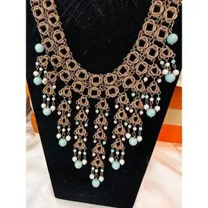 NWT Stunning Chico's statement necklace brushed dark goldtone with bib design