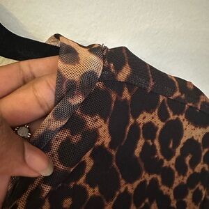 Step out in style with this Mango bodycon dress, featuring a chic mock neck and long sleeves. The dress showcases a captivating leopard print in black and brown tones, perfect for a night out or cocktail event. Its form-fitting silhouette and sophisticated design make it a standout choice for any occasion. In excellent condition, just a few threads on the collar (pictured). Smoke free home with dogs 🐶