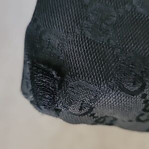 The bag has been well loved. I have used this for many many years. All zipper works. All corners of the bag are damaged (no holes). The leather surfaces have scratches. One of the lining of the pockets is starting to come off, a few blemish spots. This bag is not in good condition but useable.