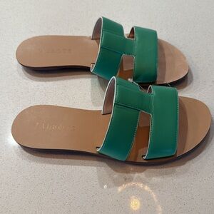 NWOB Talbots Green Slide Leather Upper Sandals Size 5