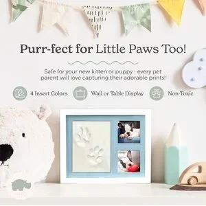 Create lasting memories with the Handprint Kit. This kit includes non-toxic clay and a white and green wooden frame, perfect for capturing your child's handprints. Easy to use and safe for kids.