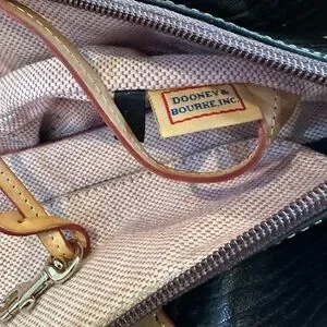 Dooney & Bourke Grommet Shopper Large Black Leather Tote-gold toned hardware-removable zip top that snaps out-dual handles with approximate 10.5 inch drop-approximately 18x11x6-4 interior pockets 1 zips 1 snaps-some matks on the interior otherwise excellent condition-beautiful bag with so much room!