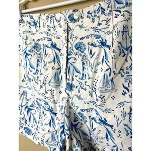 Kiel James Patrick Nautical Chinoiserie Linen Blend Shorts Size 10