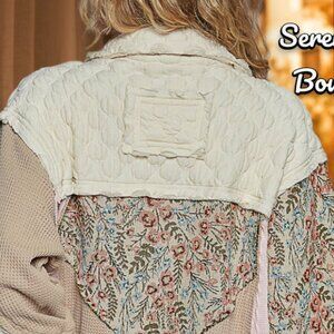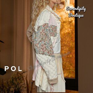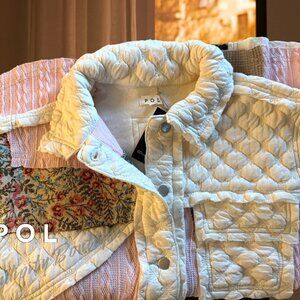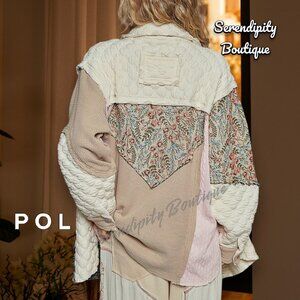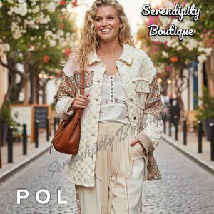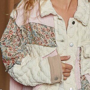 POL Coastal Bohemian Luxurious Quilted Jacquard Collared Button Up Comfy Jacket