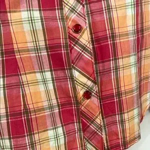 This Vigoss button down shirt features a vibrant red and orange color scheme, perfect for adding a pop of color to your wardrobe. Its lightweight fabric ensures comfort, while the classic western design adds a touch of flair to any casual occasion.