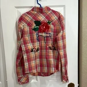 Vigoss Button Down Shirt with Western Flair embroidered flowers size medium