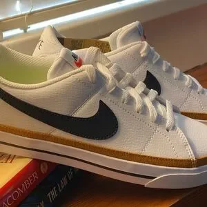NEW fabulous Nike white and black with a copper stripe Big Swoosh Classic Size 8