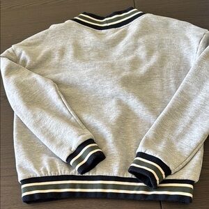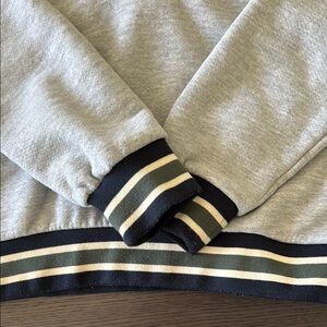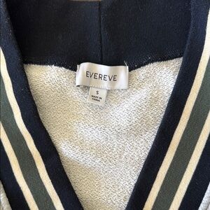 Elevate your wardrobe with this Evereve V-neck sweater, showcasing a sophisticated gray hue complemented by striking black striped trim. Crafted from a soft knit material, it offers both comfort and style, making it a versatile addition to any casual ensemble. Cute, preppy look!!