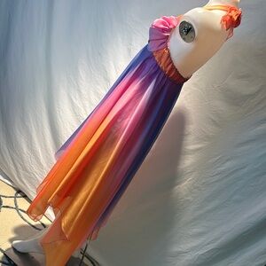 Step out in style with this elegant ombre halter midi dress. Featuring a stunning blend of purple and orange hues, this dress is perfect for any occasion. The flowing design adds a touch of sophistication to your wardrobe.