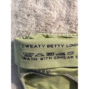 Discover the perfect blend of comfort and style with the Sweaty Betty Green Sports Bra in size M. Designed for active women, this medium-support bra features a seamless design and racerback style, ensuring a snug fit without compromising on flexibility. The ribbed band and breathable fabric make it ideal for yoga sessions or gym workouts. With full cup coverage and a wireless fit, it offers the support you need for any active occasion. Plus, it's machine washable for easy care. Condition: New.