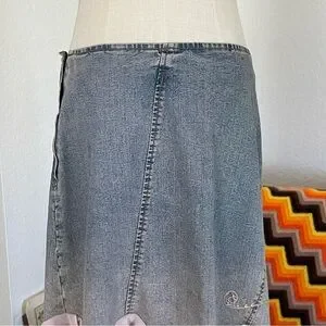 SOLD Vintage H.I.T Jeans USA Fairy Boho Denim Embellished Embroidered Skirt