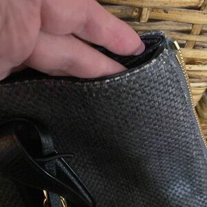 Vintage Henri Bendel black woven gold hardware tassels expandable tote bag