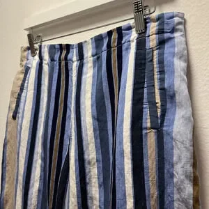 Vilagallo Women’s Crop Wide Leg Strip Pants Size 42
