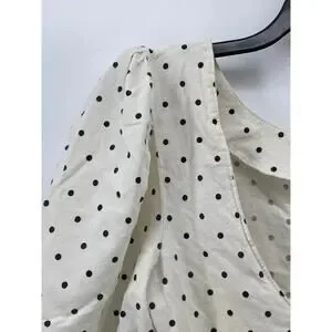 UNBRANDED Women's White-Black Micro Dot Print Balloon Sleeve Cropped Top SZ S