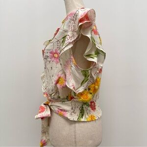 Calypso St. Barth Floral Wrap Ruffle Linen Blend Natural Shirt Size Large