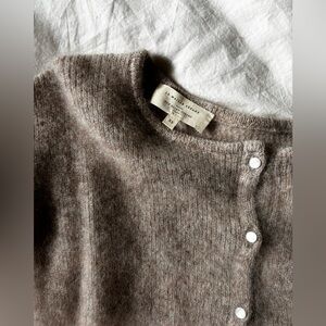 Sezane Gaspard Cardigan in light beige. Admittedly, I washed this item on delicate and it shrunk. There are some fabric changes due to this.