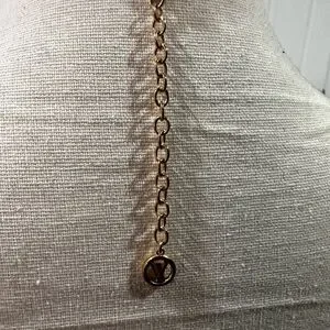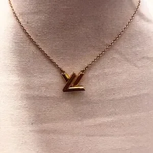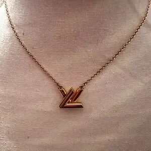 This elegant gold necklace adds a touch of sophistication to any outfit. Perfect for any occasion. Faint scratches on LV charm. Other than that it’s beautiful and in great condition.