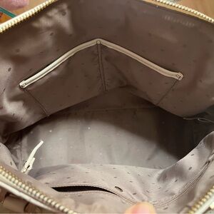 Chic quilted design. Elegant taupe color. Perfect for any occasion. One tiny spot on the leather on the back side (see in picture) other than that spot, this bag is in pristine condition.