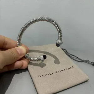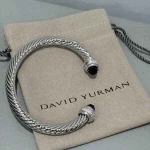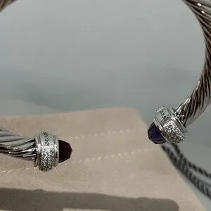 David Yurman 7mm Cable Station Bracelet Silver with Amethyst with diamonds