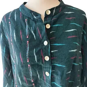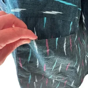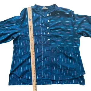 Market Place Handwork Of India Blue Cotton 3/4 Length Sleeve Tunic Size 1W. Beautifully crafted 100% cotton tunic top. Blue with pink accent design, button up, and one pocket. Excellent condition with no rips, stains, or defects. From a smoke and pet free home.