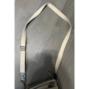 Very small stain on the right lower back corner. Also some discoloration and pilling on the one side of the strap.
